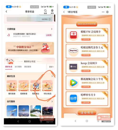 中行尊享权益,1积分抢兑哈啰单车月卡