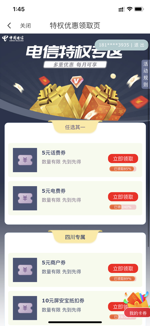 参与方式:翼支付app--四川生活--四川用户特权--进入领取;