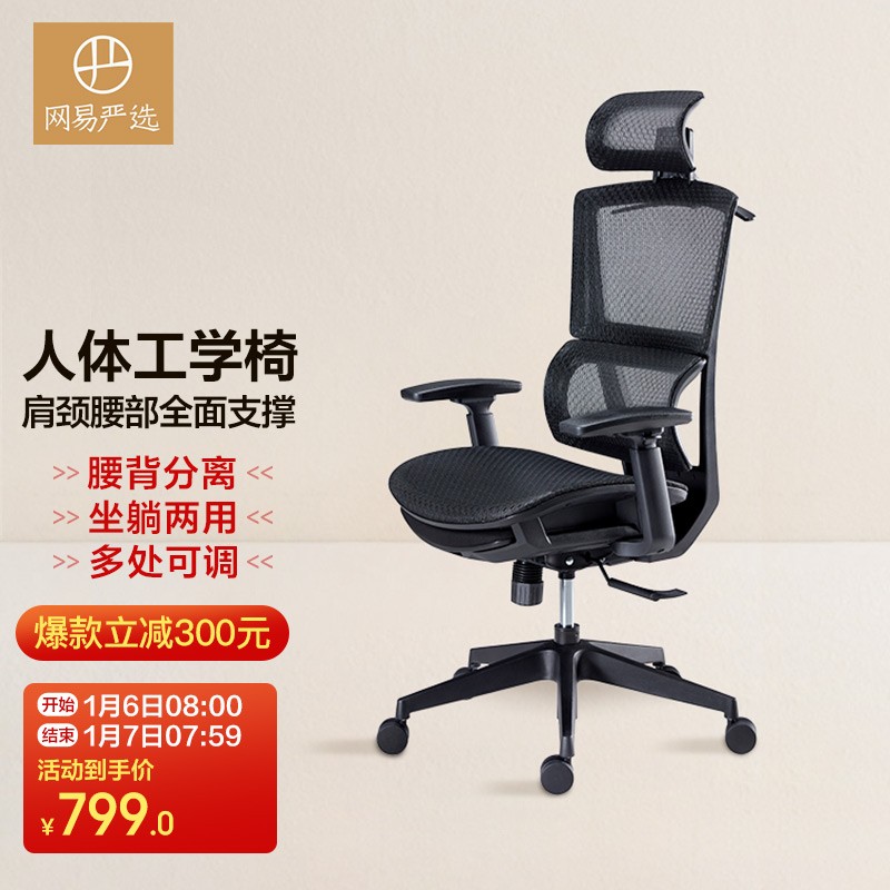 网易严选 人体工程学转椅办公椅可躺电脑椅靠背椅子家用转椅伸缩脚踏