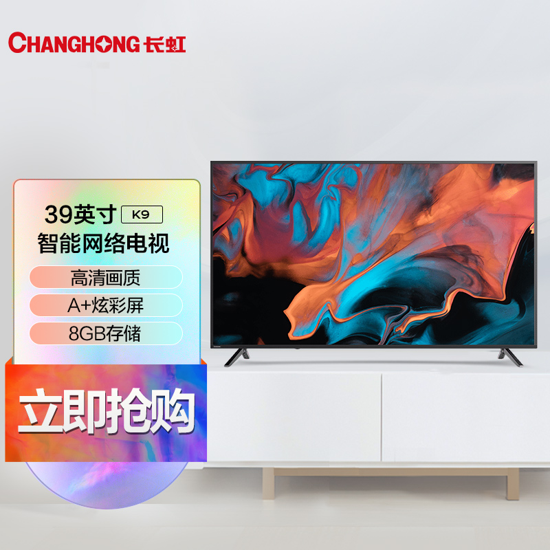 长虹×京东京造 39K9 39英寸智能网络高清画质4k解码 手机投屏 1+8GB液晶LED电视机(黑色)(专卖店)