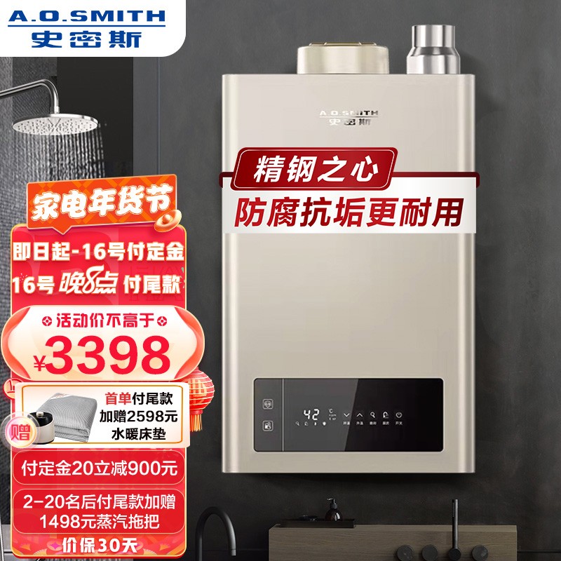 史密斯 16升燃气热水器 耐用升级 不锈钢换热器 恒温沐浴 负压燃烧系统 高层抗风 家用大水量JSQ31-TM5