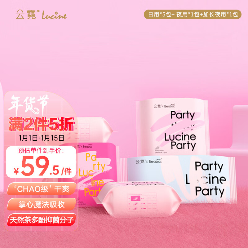 云霓 碧芭宝贝Party 双芯体掌心包卫生巾日夜组合装(日用60片+ 夜用10片+加长夜用4片) 姨妈巾护垫