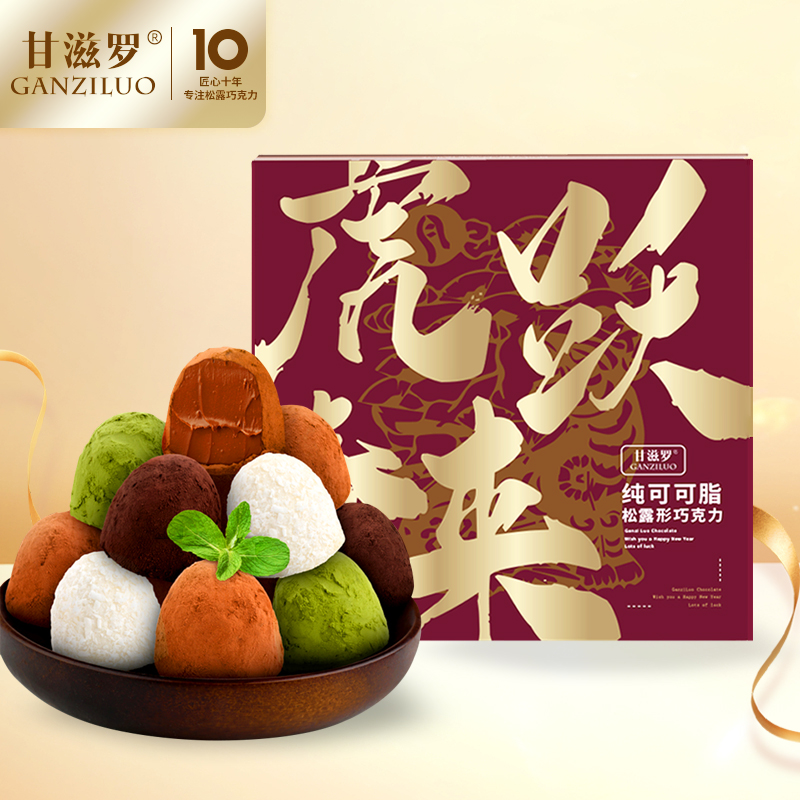 甘滋罗 纯可可脂松露巧克力310g虎跃春来巧克力礼盒新年礼物年货礼盒送女友 送老师巧克力礼盒
