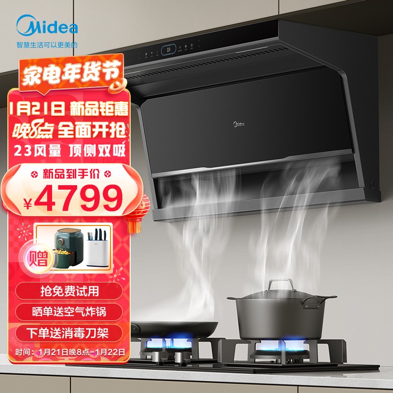 美的(Midea)抽油烟机 23立方大吸力顶侧双吸 DC6+Q70+JM9