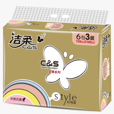 洁柔(C&S)抽纸 金尊系列 3层120张6包 天然无香抽取式 面纸巾 (小规格)