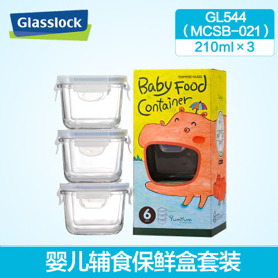 三光云彩(GLASSLOCK)保鲜盒韩国原装进口婴儿辅食盒宝宝果泥礼盒玻璃钢化耐摔迷你密封防漏保鲜盒210ml*3礼盒装