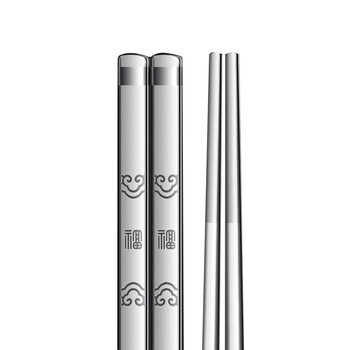 双枪 (Suncha) 304不锈钢福字方筷 不发霉餐具套装防滑日式礼品酒店家用筷10双装 DK3070