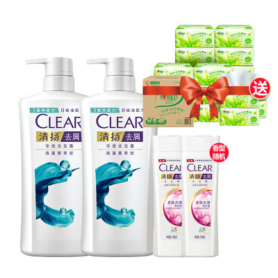 清扬去屑头皮净透洗发露 海藻菁萃型900g*2+100ml*2(香型随机)送心相印 120抽*18