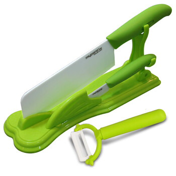 美瓷(MYCERA)陶瓷刀四件套 陶瓷刀菜刀陶瓷水果刀削皮器刀架宝宝辅食刀(绿色)TES03F