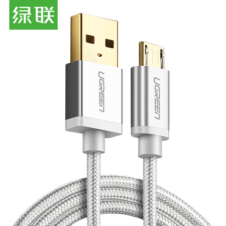 绿联 安卓手机数据线 2A快充充电器线 Micro USB编织电源线 支持华为小米三星oppo/vivo 1.5米 30656 银白
