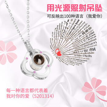 乾越(qianyue)四叶草925银100种语言我爱你项链带礼盒 七夕情人节礼物送女友生日礼物送女生 告白礼物项链