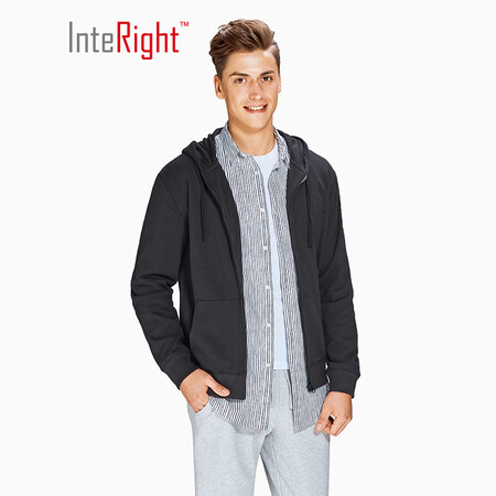 INTERIGHT卫衣男连帽开衫毛圈卫衣外套 黑色 L