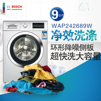 博世(BOSCH) XQG90-WAP242689W 9公斤 变频除菌 羽绒服洗涤程序 高温筒清洁 滚筒洗衣机(银色)