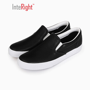 INTERIGHT 休闲鞋 男士简约百搭牛皮低帮套脚皮鞋一脚蹬男鞋 黑色 41