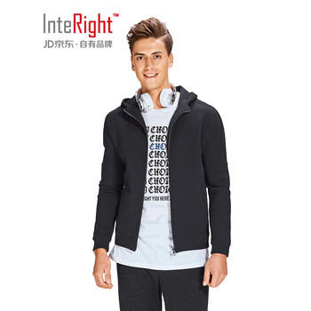 INTERIGHT卫衣男简约商务休闲外套连帽夹克 外套 黑色 XL
