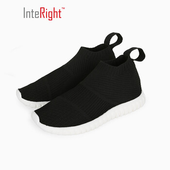 INTERIGHT 休闲鞋 女士飞织一脚蹬轻弹轻便袜鞋 黑色 38