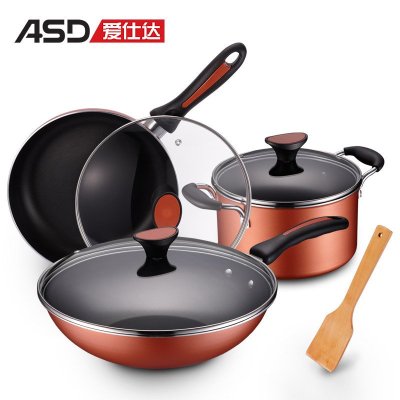 爱仕达(ASD) 套装锅三件套 WG03CTJ2 炒锅煎锅汤锅送锅铲少油烟新不粘电磁炉通用 锅具套装