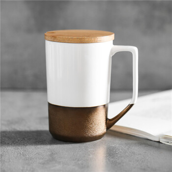佳佰 陶瓷水杯 带盖金属白色马克杯
