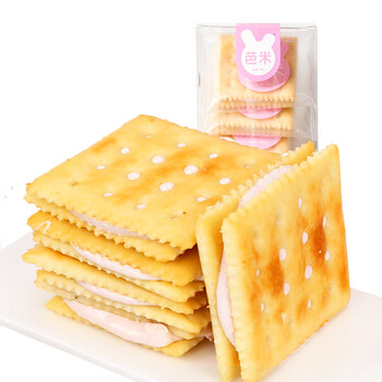 芭米牛轧饼干 台湾风味早餐糕点休闲零食 软奶苏打夹心饼干 草莓味148g