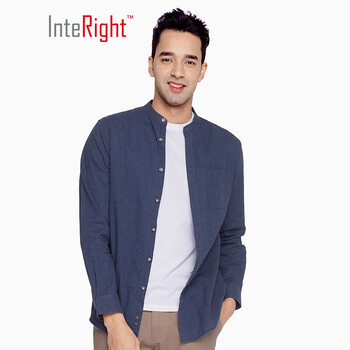 INTERIGHT 45雨露麻棉净色男士长袖衬衫 深蓝色 39码
