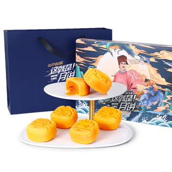 三只松鼠这就是月饼甜心礼盒奶黄味6只装 中秋水晶夹心冰皮月饼网红潮礼送礼送长辈300g