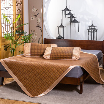 皮尔卡丹 凉席家纺 藤席夏凉席空调席子可折叠凉席三件套 罗马格 适用1.8米床
