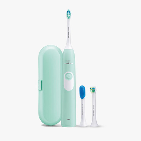 飞利浦(PHILIPS)电动牙刷HX6213/60 青春系列声波震动牙刷 带齿间护理刷头舌苔刷(悦动绿)