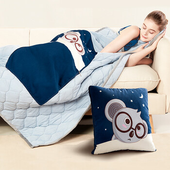 佳奥 车载汽车抱枕被子两用毯子办公室枕头午睡毯车上折叠加厚冬季 藏青色 大号呆萌熊