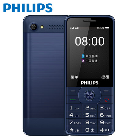 飞利浦(PHILIPS) E280 海军蓝 直板时尚大屏 超长待机 移动联通2G 双卡双待 老人手机 学生备用功能机