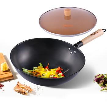 康巴赫德国炒锅少油烟无涂层精铸铁锅老铁锅电磁炉燃气通用32cm
