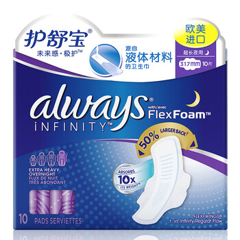 护舒宝(Always)未来感·极护卫生巾超长夜用317mm 10片(欧美原装进口 液体材料 10倍吸收)