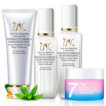 植美村(ZMC)套装 雪肤素颜亮肌礼盒 (洁面乳100g+精华水160ml+精华乳130ml+素颜霜55g)补水保湿