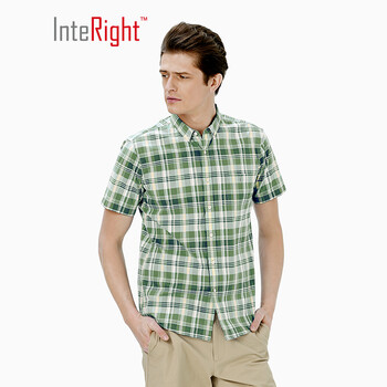 INTERIGHT 衬衫男 云整理 清新干爽 休闲舒适 短袖衬衫 绿黄格 39码