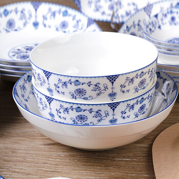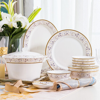 洛威 餐具套装家用景德镇骨瓷金边碗碟套装 56头金镶玉