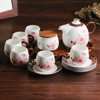 韵唐 骨瓷茶具咖啡具组合套装 15头骨瓷茶壶茶杯咖啡具带茶叶罐托盘 普罗旺斯