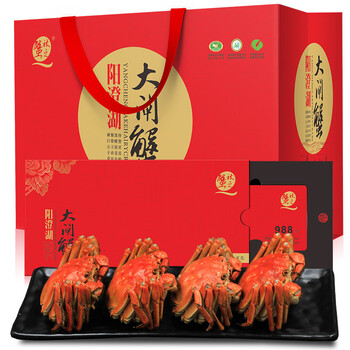 【礼券】秋之蟹 阳澄湖大闸蟹礼券988型螃蟹卡券 公蟹3.0两 母蟹2.0两 4对8只礼盒装 海鲜水产