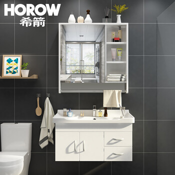 希箭(HOROW)实木浴室柜套装浴室镜洗漱台面盆洗手盆洗脸盆吊柜组合套装 雅典白80cm?ZYBB-0629-2