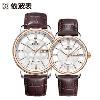 依波(EBOHR)手表 都市经典系列时尚商务白面皮带机械情侣表3624
