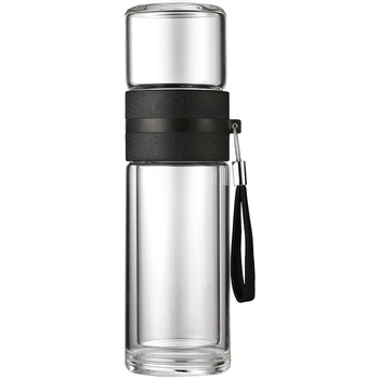 富光拾喜 茶水分离泡茶杯 双层隔热带滤网水杯 商务男女士玻璃杯子 260ml 黑色