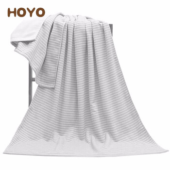 HOYO日本进口品牌 浴巾男女 素颜系列 纯棉AB面长绒棉 全棉纱布吸水大浴巾 A类婴幼儿童可 素颜条纹系列-灰