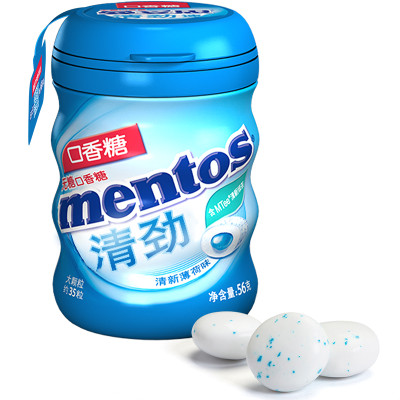 曼妥思清劲夹心无糖口香糖清新薄荷味56g瓶