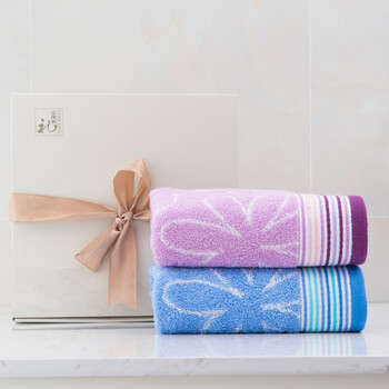 洁丽雅(Grace)毛巾家纺 纯棉太阳花面巾柔软吸水毛巾礼盒两条装 70*34cm 100g/条