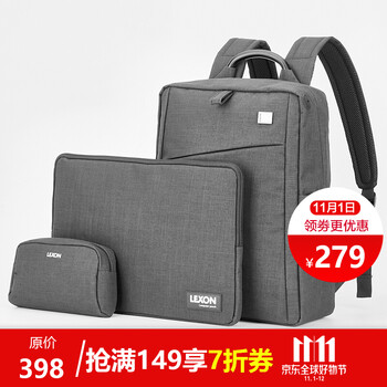 法国乐上(LEXON)双肩电脑包防水15.6英寸商务笔记本背包三件套装组合 2018升级款
