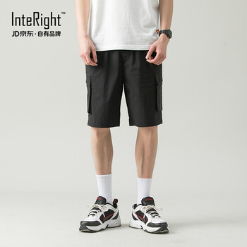 INTERIGHT 四面弹休闲工装裤男士运动短裤男夏休闲裤男速干跑步健身 黑色 30码
