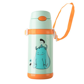 小白熊 不锈钢两用保温水壶 儿童保温杯吸管杯 婴儿两用水杯 宝宝喝水杯学饮杯 500ML 绿色 09761