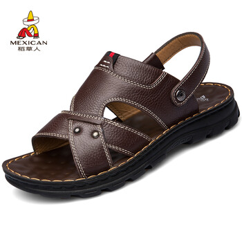 稻草人 MEXICAN 头层牛皮沙滩凉鞋男士透气套脚拖两用户外休闲旅游百搭 DCR9T26 棕色 42