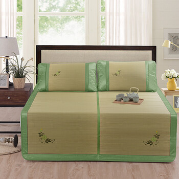 北极绒 凉席家纺 舒适绣花天然凉爽空调席可折叠藤席 草席三件套 1.5米床