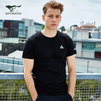 七匹狼短袖T恤男士2019夏季新品圆领运动休闲上衣 001(黑色) 175A
