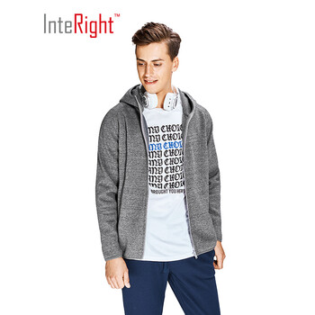 INTERIGHT卫衣男春季连帽运动拉绒复合摇粒绒开衫 深灰 L