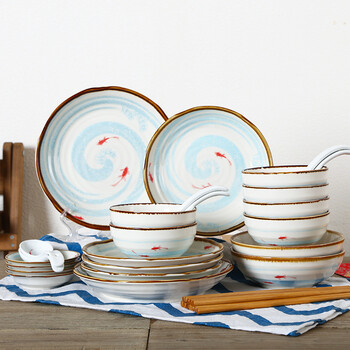 顺祥 餐具 碗盘套装 日式简约 30头 可微波炉餐具套装 食来运转